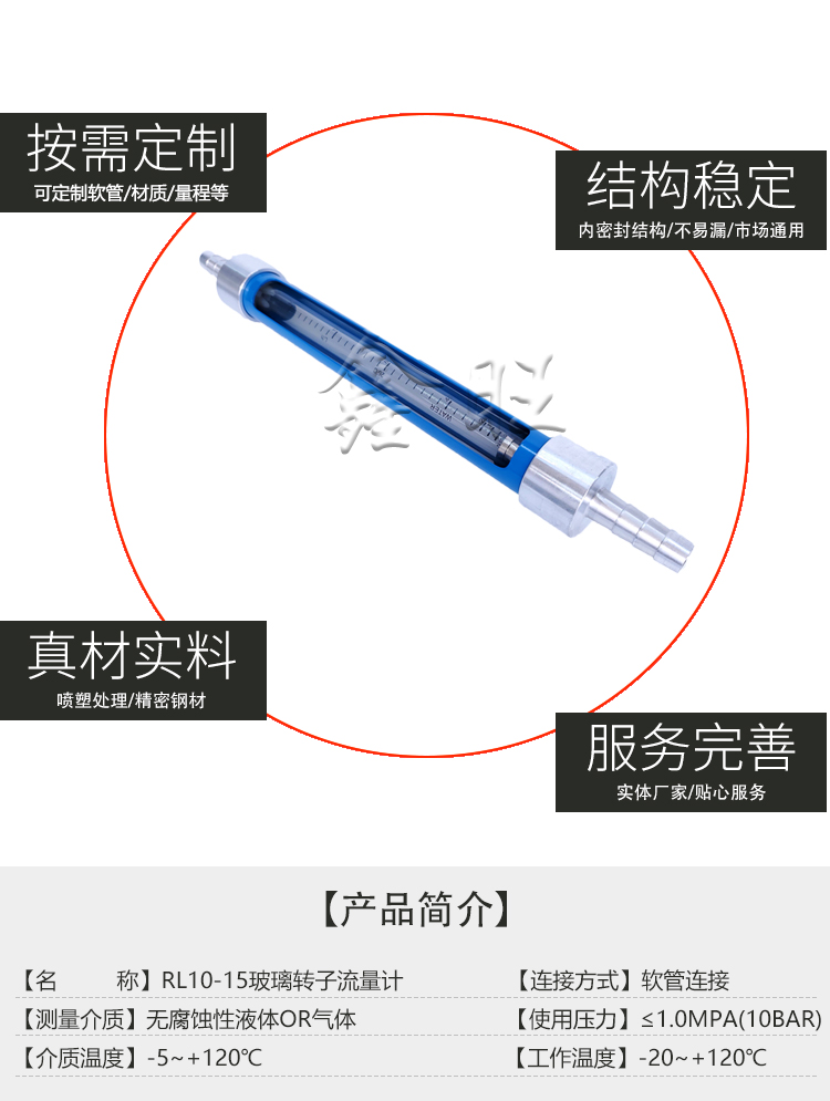 RL10-15软管连接玻璃转子流量计可替代引进成套设备上的玻转仪表,广泛的应用于化工、轻工、制药、食品、造纸、环保和计量测量、科研等部门,